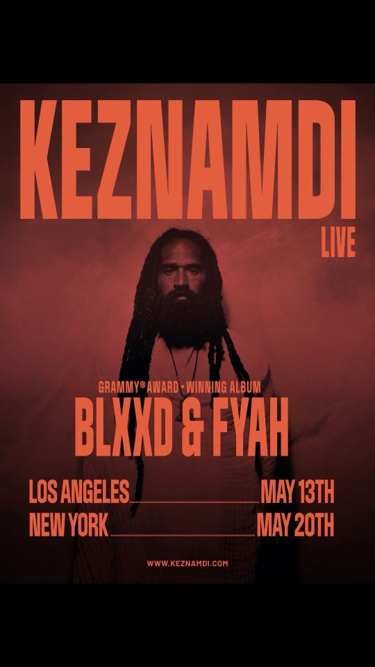 Keznamdi—the 2026 Grammy Award winner for “Best Reggae” album, BLXXD & FIYAH—has confirmed shows in Los Angeles at the Hotel Cafe on May 13 and New York City at S.O.B.’s on May 20, with additional 2026 shows to be announced. Tickets are available at Keznamdi’s official website HERE. Watch a video reel HERE.