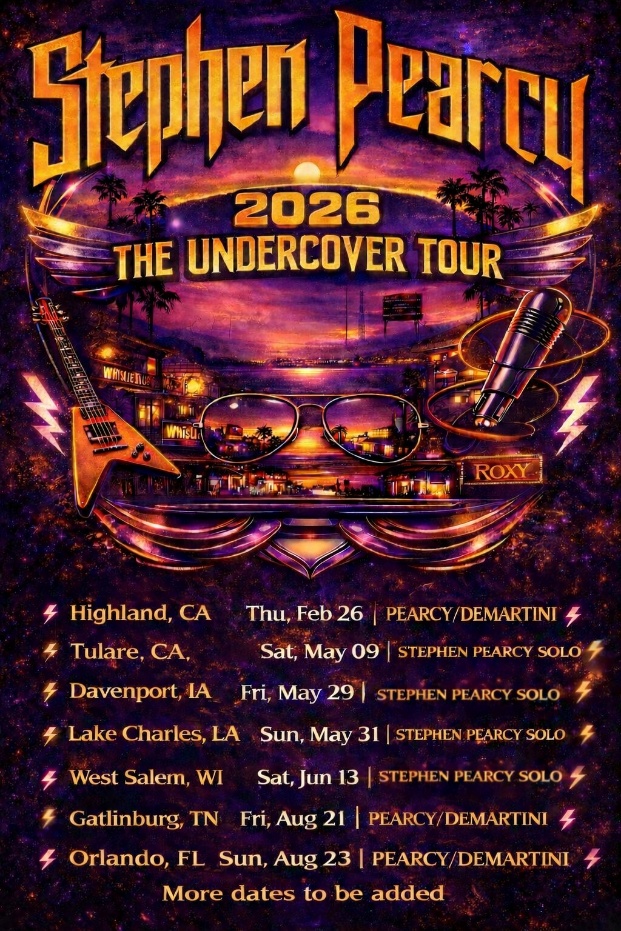 As he continues to lay down tracks for his upcoming sixth solo album, STEPHEN PEARCY—the voice of RATT—has announced his initial tour dates for 2026. Billed as “The Undercover Tour,” the itinerary will be highlighted by performances with guitarist extraordinaire Warren DeMartini—his longtime bandmate in RATT and current touring partner—under the Pearcy/DeMartini moniker. The first date of 2026 is a Pearcy/DeMartini show on February 26 at the Yaamava’ Theater in Highland, CA. The dates are below and listed HERE.